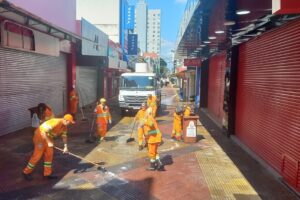Calçadão recebe limpeza para compras do Dia das Mães