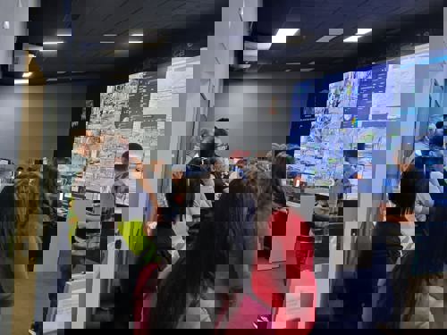 A comitiva também visitou o CSI, onde foi demonstrado o trabalho de fiscalização da mobilidade, por meio das câmeras inteligentes. O centro também é responsável pelo monitoramento em tempo real da frota do serviço de transporte público coletivo municipal e pela identificação de movimentos incomuns no tráfego de veículos, aumentando a segurança e a eficácia da operação.